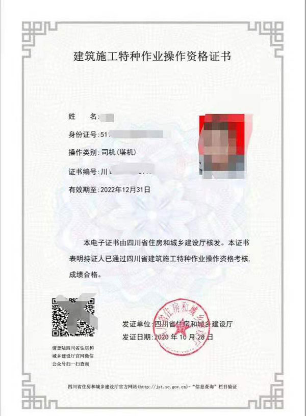 四川省住房和城鄉建設廳:特種作業操作證: 建筑電工,建筑架子工,建筑架子工(附著升降腳手架,)建筑起重司索信號工,建筑起重司機(塔式起重機),建筑起重安裝拆卸工(塔式起重機)建筑起重機械司機(施工升降機),建筑起重安裝拆卸工(施工升降機),建筑起重機械司機(物料提升機),建筑起重安裝拆卸工(物料提升機),高空作業吊籃安裝拆卸工,經省級以上人民政府建設主管部門認定的其他特種作業。 國務院建設主管部門負責全國建筑施工特種作業人員的監督管理工作。 申請從事建筑施工特種作業的人員,應當具備下列基本條件: 1,年滿18周歲且符合相關工種規定的年齡要求,2, 初中及以上學歷,3, 符合相應特種作業需要的其他條件。 建筑施工特種作業人員是指在房屋建筑和市政工程施工活動中,從事可能對本人、他人及周圍設備設施的安全造成重大危害作業的人員。 建筑施工特種作業人員必須經建設主管部門考核合格,取得建筑施工特種作業人員操作資格證書(以下簡稱“資格證書”),方可上崗從事相應作業