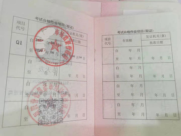 考試內容分理論知識和實際操作。理論考試題目數量為100題,考試時間為120分鐘,70分及格。實際操作考試內容為部件識別、基本操作、應急處置,70分及格。證書由市場監督管理局頒布,有效期4年,全國通用通審。