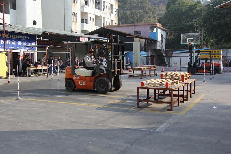 3、時間要求:4分鐘內(nèi)完成。計時從叉車起步行駛開始至整個場內(nèi)“8”字行駛考核完成,人離駕駛室時結(jié)束。要求起步和結(jié)束時都要鳴號示意。